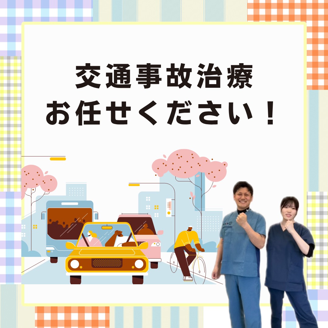 交通事故によるむち打ちや打撲、違和感などの症状にも対応しています。